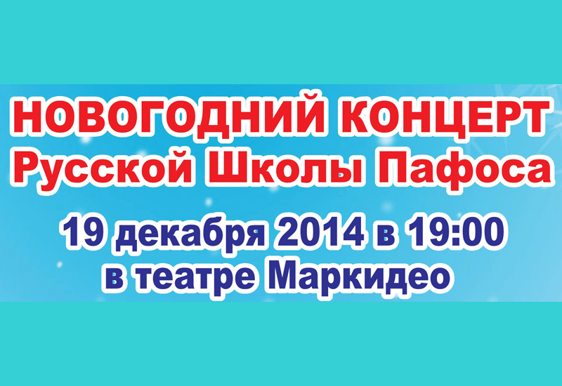 Новогодний концерт Русской школы ПафосаВ пятницу 19 декабря 2014 года в театре "Маркидео" в Пафосе состоится Новогодний праздничный концерт, организованный Русской школой Пафоса. |